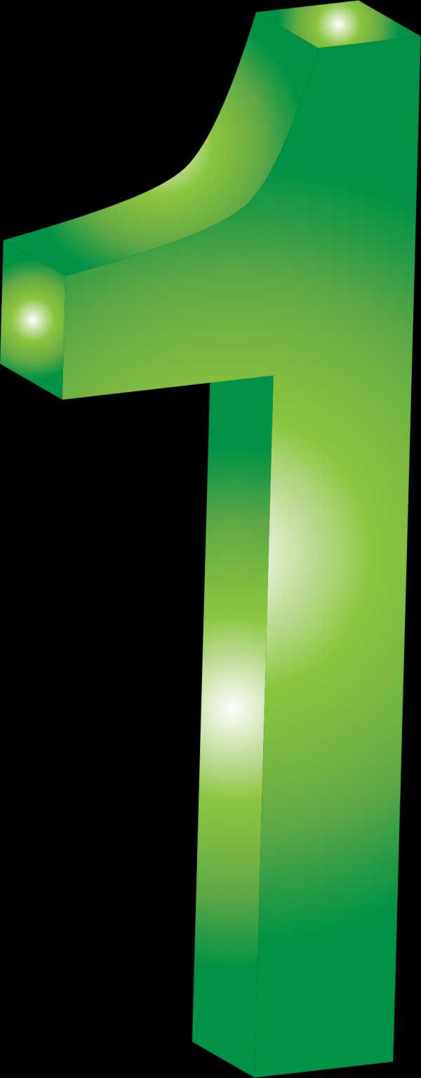 Объемная цифра один зеленого цвета.