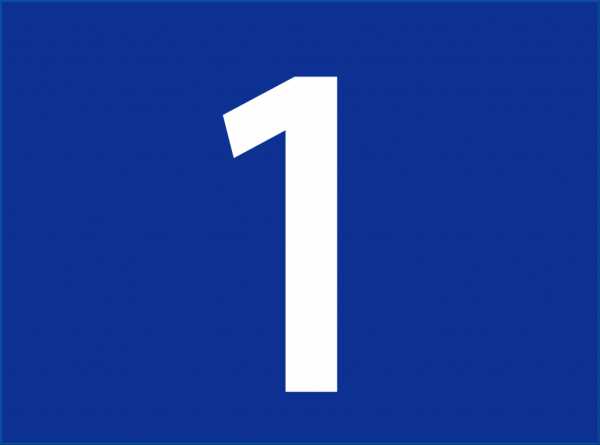 Белая цифра один на синем фоне.