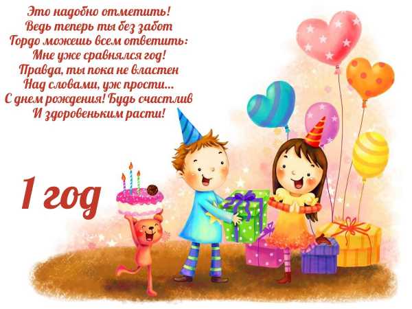 Тебе сегодня ровно год, ка быстро наш малыш растет! Ты сильным, смелым становись, счастливым будь, и улыбнись!