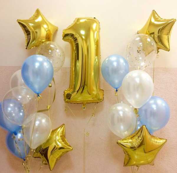 Цифра один в виде воздушных шариков.