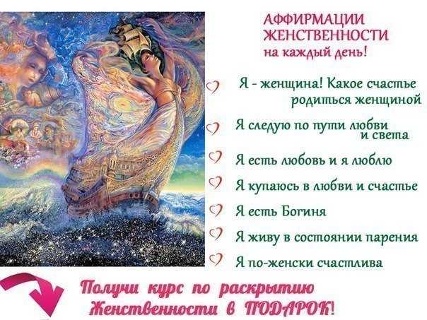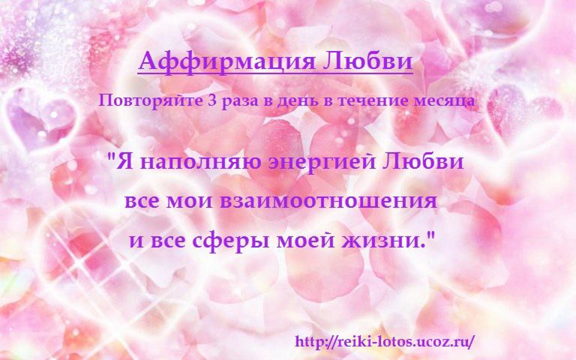 - Я открыта для любви и гармоничных отношений с любимым и любящим меня человеком.
