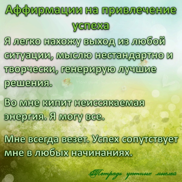 Волшебные аффирмации помогают развить и укрепить уверенность в себе, найти мотивацию и быть заранее настроенным на положительный результат.