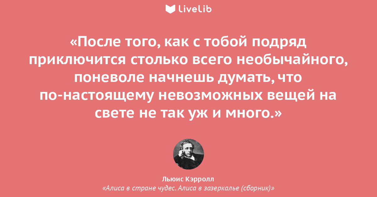 Несмотря на то, что Льюис Кэрролл представил свою «невообразимую» историю как сон своей крохотной племянницы, ему хотелось в нее верить. С тех пор цитаты Льюиса Кэрролла хорошо известны во всем мире. Кажется, что эта сказка больше предназначена для людей постарше. В ней столько секретов, что разгадывать их можно бесконечно. Многие фразы стали крылатыми и сопровождают нас всю жизнь. Цитаты из «Алисы в стране чудес» хорошо известны, и вы можете увидеть их по всему Интернету. Но их магия все же очевидна, потому что в разном возрасте они воспринимаются по-новому.