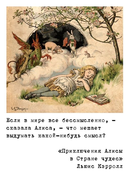 - … «но, — сказала Алиса, — если в мире нет абсолютно никакого смысла, кто мешает нам изобрести его?»