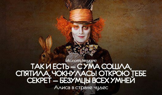 Обожаю психов, только они понимают окружающий нас мир, только с ними я могу найти общий язык…/Чеширский кот/