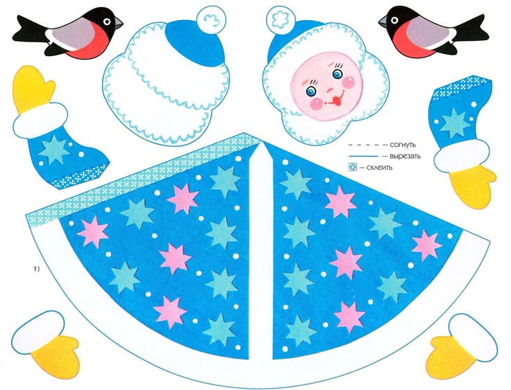 - Определившись с рисунком, вырезать необходимые детали. Напр., для снеговика – кружочки белого или голубого цвета, для цветка – овальные лепестки.