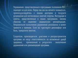 - Π’Π°ΠΊΠΆΠ΅ Π½Π΅ΠΎΠ±Ρ ΠΎΠ΄ΠΈΠΌΠΎ ΡΠ»Π΅Π΄ΠΈΡΡ Π·Π° ΡΠ°ΠΌΠΎΡΡΠ²ΡΡΠ²ΠΈΠ΅ΠΌ Π²ΠΎ Π²ΡΠ΅ΠΌΡ Π²ΡΠΏΠΎΠ»Π½Π΅Π½ΠΈΡ: Π·Π°Π½ΠΈΠΌΠ°ΡΡΡΡ ΡΠΎΠ»ΡΠΊΠΎ Π² ΠΏΡΠΎΠ²Π΅ΡΡΠ΅Π½Π½ΠΎΠΉ ΠΊΠΎΠΌΠ½Π°ΡΠ΅ ΠΈ Π² ΡΠ²ΠΎΠ±ΠΎΠ΄Π½ΠΎΠΉ ΠΎΠ΄Π΅ΠΆΠ΄Π΅. ΠΠ΅Π»ΠΈΠΊ ΡΠΈΡΠΊ ΠΏΠΎΠ²ΡΠ΅Π΄ΠΈΡΡ Π²Π½ΡΡΡΠ΅Π½Π½ΠΈΠ΅ ΠΎΡΠ³Π°Π½Ρ, Π½Π΅ΠΊΠΎΡΠΎΡΡΠ΅ ΠΎΡΠΌΠ΅ΡΠ°ΡΡ Π±ΠΎΠ»Ρ Π² ΠΆΠΈΠ²ΠΎΡΠ΅ ΠΈ Π³ΠΎΠ»ΠΎΠ²ΠΎΠΊΡΡΠΆΠ΅Π½ΠΈΠΈ. ΠΡΠΈ Π²ΠΎΠ·Π½ΠΈΠΊΠ½ΠΎΠ²Π΅Π½ΠΈΠΈ ΡΠ°ΠΊΠΈΡ ΠΏΠΎΠ±ΠΎΡΠ½ΡΡ ΡΡΡΠ΅ΠΊΡΠΎΠ² ΡΡΠΎΠΈΡ ΠΏΡΠ΅ΠΊΡΠ°ΡΠΈΡΡ ΡΡΠ΅Π½ΠΈΠ½Π³. ΠΠ± ΡΡΠΈΡ ΡΠΎΠ½ΠΊΠΎΡΡΡΡ ΡΡΠΎΠΈΡ ΠΏΠΎΠΌΠ½ΠΈΡΡ ΠΏΠ΅ΡΠ΅Π΄ ΡΠ΅ΠΌ, ΠΊΠ°ΠΊ Π½Π°ΡΠΈΠ½Π°ΡΡ Π·Π°Π½ΡΡΠΈΡ Π±ΠΎΠ΄ΠΈΡΠ»Π΅ΠΊΡΠΎΠΌ.