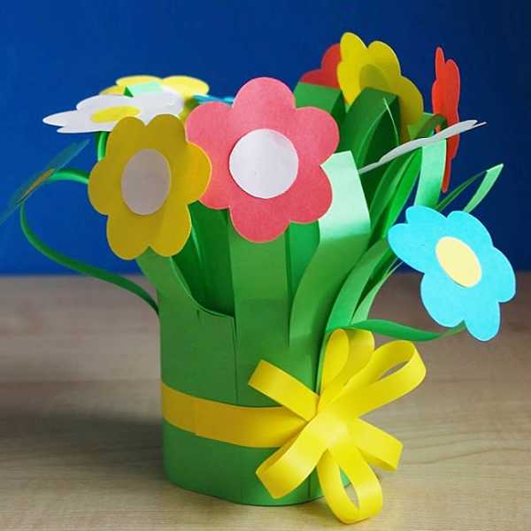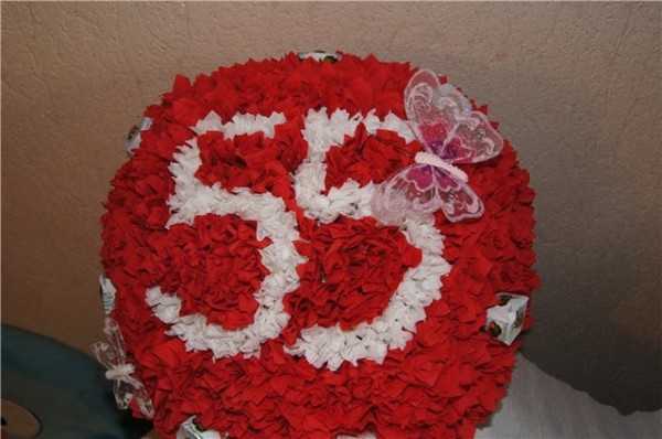 Букет из конфет порадует и приятно удивит маму. Как его сделать мы писали ранее.
