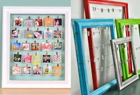 - Рамка для снимков, которые можно снимать каждый раз. Еще туда помещают «напоминалки» и различные памятки в виде записок. Конечно, в кухне такая рамка с нитями поможет высушить перец для приготовления паприки к блюдам, но лучше использовать по назначению. Думаем, настоящая хозяйка сможет везде найти место этому подарку.