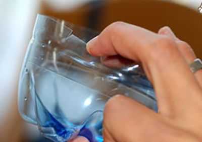 ![]() Бутылки | Отрежьте по краю две пластиковые бутылки – донышки нужны для работы. |