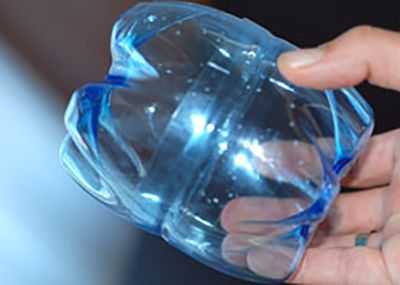 ![]() Загибаем края | На одной части следует подогнуть края, чтобы они вошли во вторую часть бутылки. |