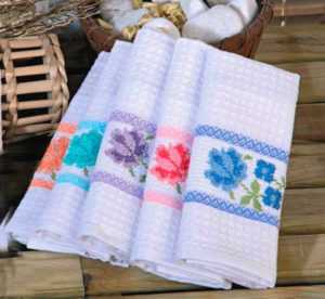 - Купить вафельное полотенце и сделать на нем вышивку гладью или крестиком, сделав оригинальный подарок папе на день рождения. Поверьте, такого полотенца не будет ни у кого!