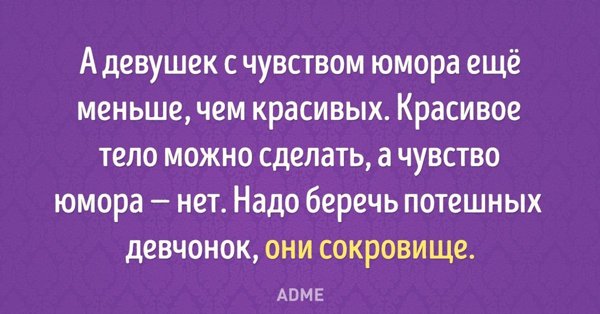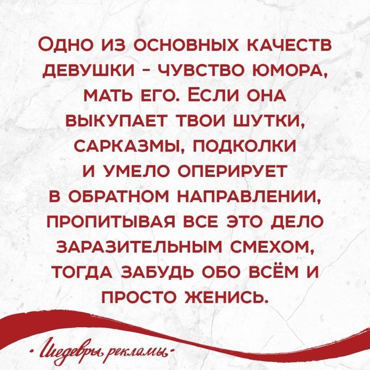 Наше умение реагировать на смешное и шутить проходит тест-драйв на каждом шагу — при трудоустройстве, вливании в новый коллектив, общении с друзьями и завязывании отношений с противоположным полом. Запаситесь парой анекдотов для разных контекстов, и вы сможете оригинально заполнить неловкую паузу и произвести благоприятное впечатление.
