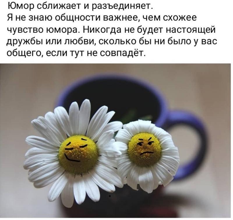 Хорошее чувство юмора — это позитивное отношение к себе и к жизни, умение заметить какую-то нелепость в ситуации и вовремя пошутить над ней. Чувство юмора предполагает ещё и умение посмеяться над собой.