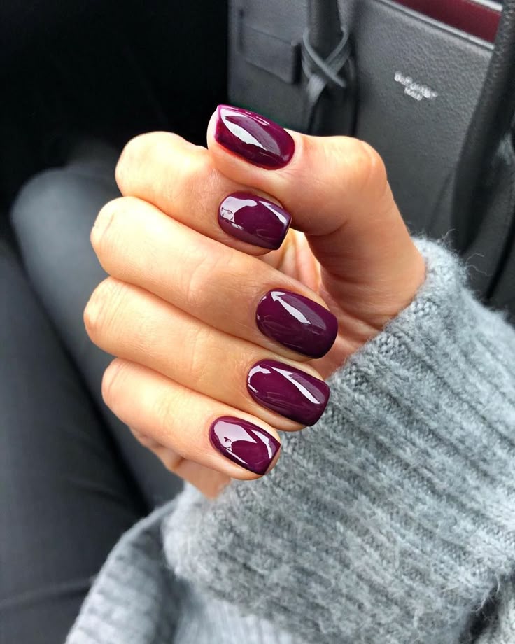 Классический бордовый цвет ногтей с матовым кремовым финишем.![]()