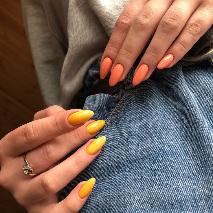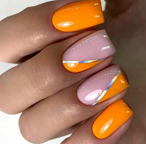 Ярко-оранжевые ногти никогда не потеряют своей актуальности, особенно летом. Этот цвет идеально подходит для всех форм ногтей. Пришло время включить свое воображение и разработать лучший нейл-арт. Например, нельзя забывать об оранжевом французском маникюре или омбре с белым.