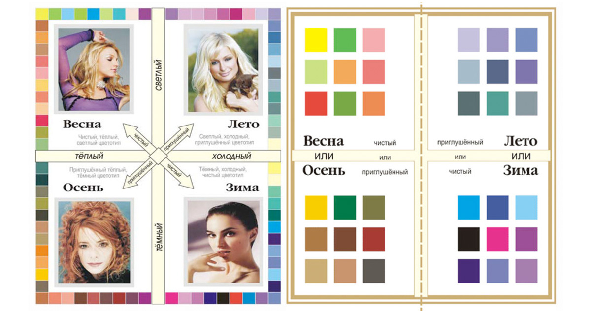 Самая распространенная теория цветотипов — это теория времен года, по которой четыре типа внешности соответствуют четырем временам года.