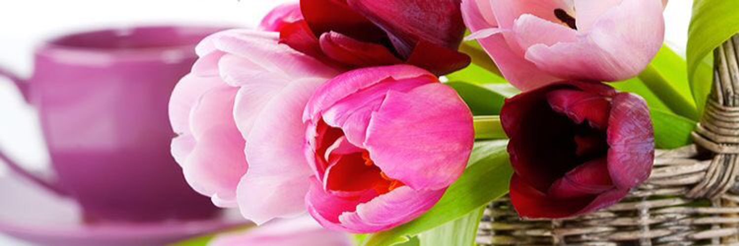 Стильная открытка с тюльпанами, утренним кофе и хорошим настроением в пятницу.