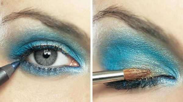 - Бирюзовый или голубой цвет накладываем над зрачком. Будет интересно также выбрать другой цвет теней под платье для выпускного.