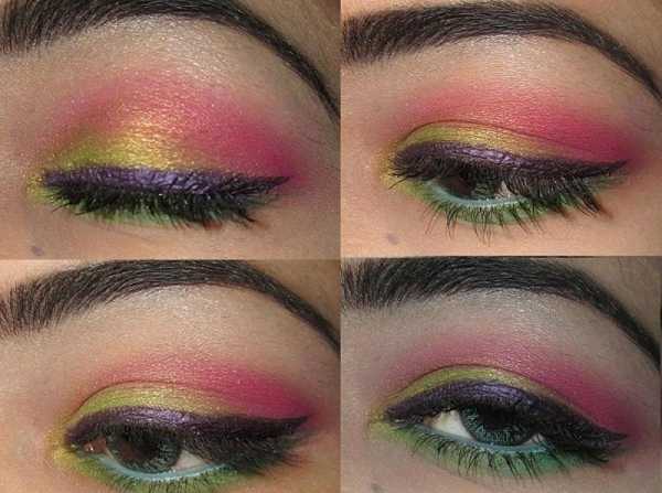 - Не рекомендуется использовать бледно-розовый и фиолетовый мотивы, что при неумелом нанесении визажа может снизить степень яркости глаз.