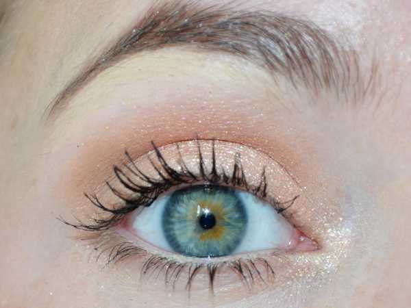 - Персиковый цвет теней накладываем на поверхность века.