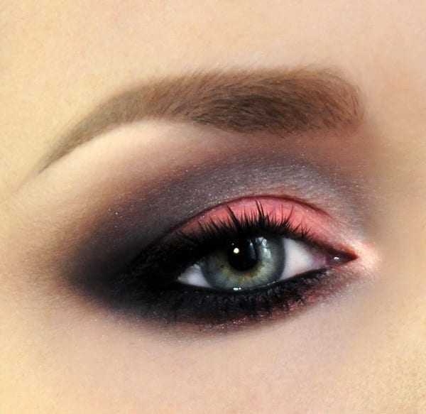 - Как вариант, можно нанести тени серой цветовой гаммы в качестве основы и осуществить постепенный переход к тёмной палитре, что создаст дымчатость взгляда.