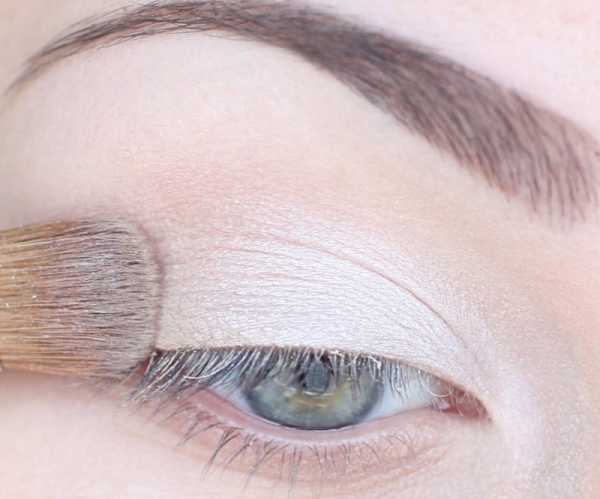 - Нанесите бежевый, схожий с цветом вашего века оттенок при помощи плоской кисти.
