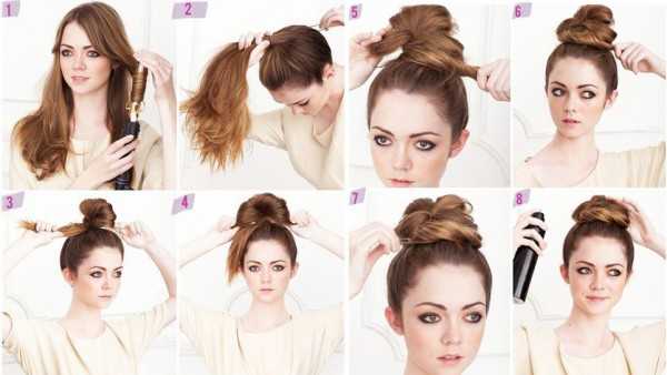 Очень многие простые в изготовлении причёски делают на основе пучка. Его можно завязывать по-разному: например, закрепить на макушке, затылке или кокетливо сбоку. Повседневный пучок может быть немного растрёпанным, а на выход — аккуратным и гладким, можно украсить его косичками и кудряшками.