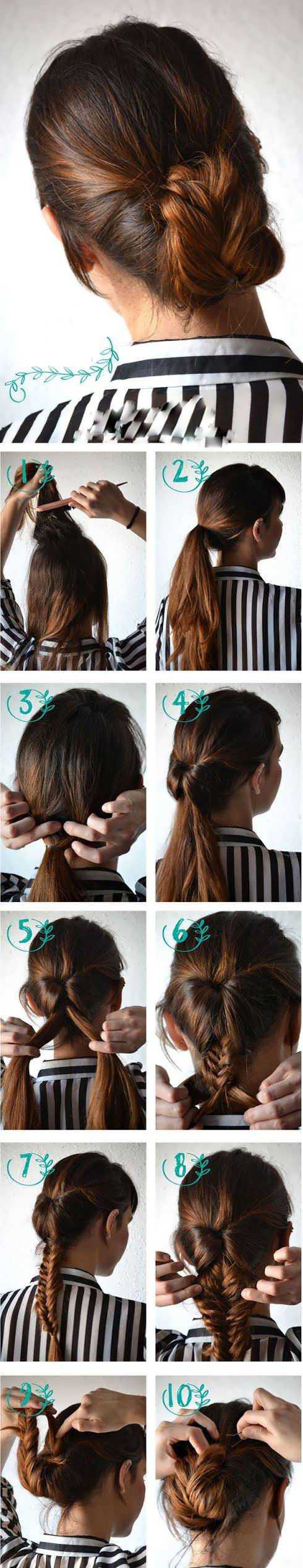 По данным схемам буквально за 5 минут до выхода из дома можно сделать Причёски на средние волосы своими силами.