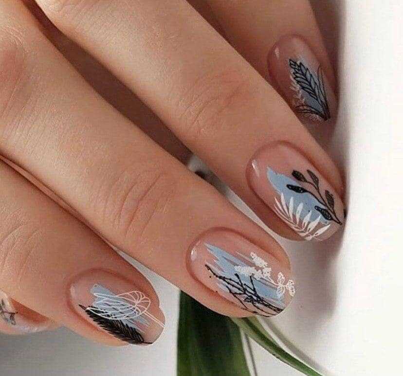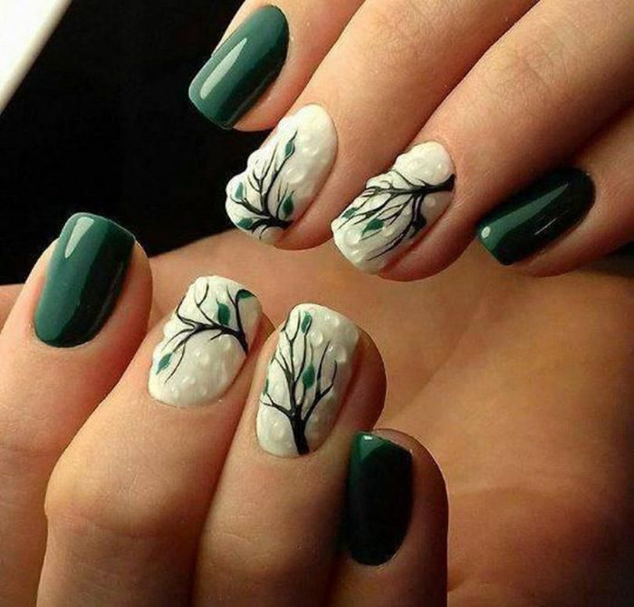 - Листочки-веточки в маникюре для осени 2019.