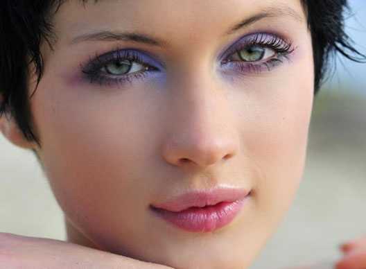 Зеленый и фиолетовый — это те цвета, которые дают великолепное сочетание. Макияж фиолетовыми тенями очень красиво смотрится в любое время года. Смягчить взгляд поможет темно-фиолетовая поводка.