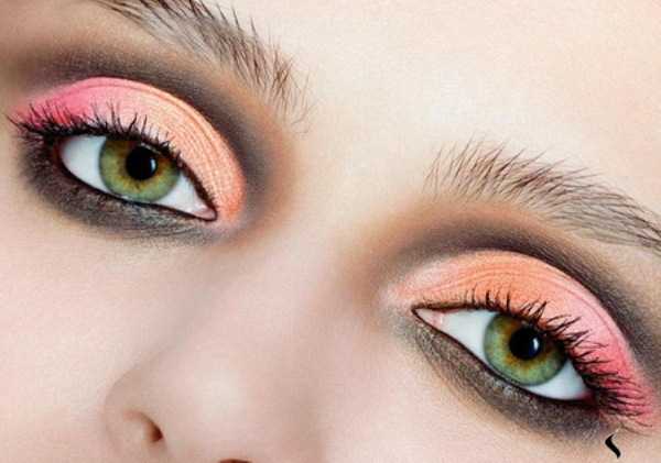 Персиковые тени отлично сочетаются с зелеными глазами. Летний вариант макияжа — очень легкий, освежающий и интересный.