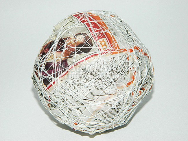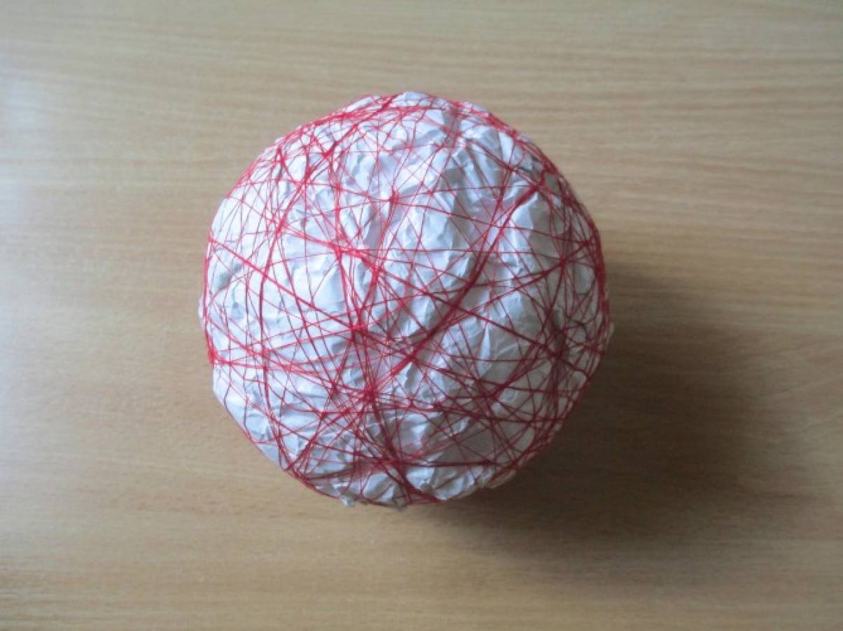 - Обмотать нитками таким образом, чтобы из овальной формы получилась сферическая;