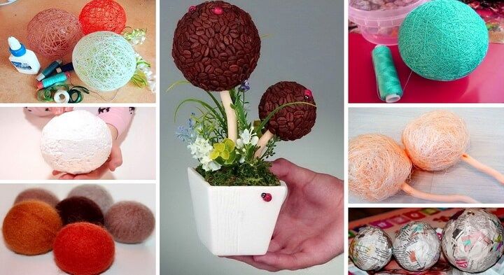 как сделать, из чего можно, из пенопласта и воздушных шаров, шарик из ниток и монтажной пены, фото, видео