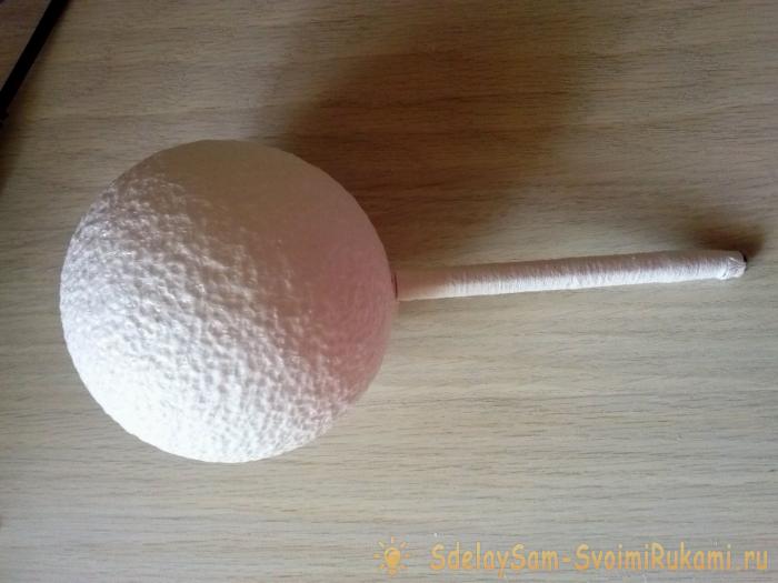 Если нужна основа очень прочная, которая выдержит тяжелые украшения, например, леденцы или Чупа-Чупсы, нужно оклеить шарик оболочкой из папье-маше.