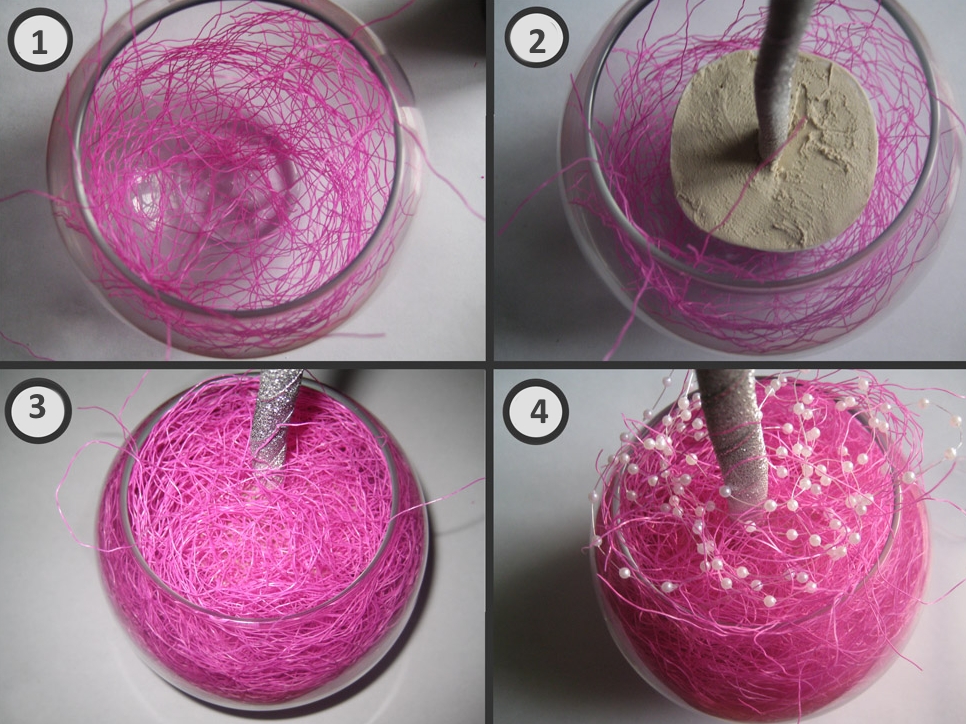Шаг 8. Завершите оформление мхом в верхней части вазы.