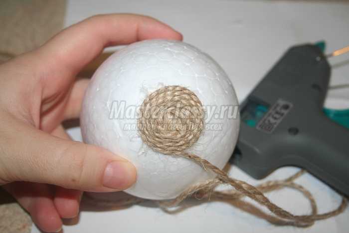 Прикладывая понемногу сизаль к шарику, обматывайте нитками того же цвета. Добейтесь равномерного распределения сизаля по всей поверхности. И опять же – следите, чтобы форма оставалась круглой. Хорошо закрепите сизаль нитками – и Вы получили отличный шар из сизаля, который, кстати, может использоваться в декоре интерьера как отдельный элемент или как основа композиции.