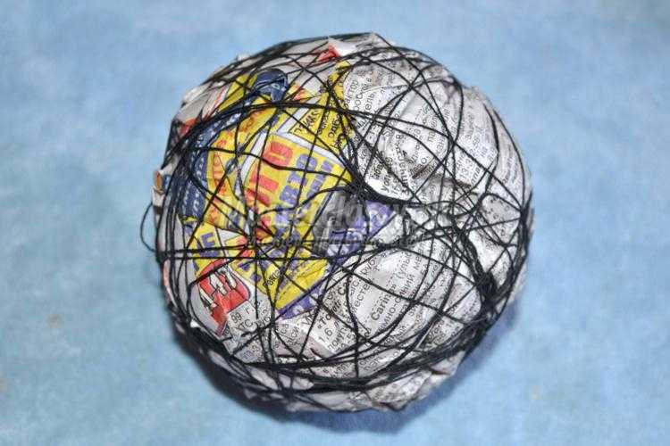 - Теннисный мяч, обклеенный бумагой для увеличения объема;