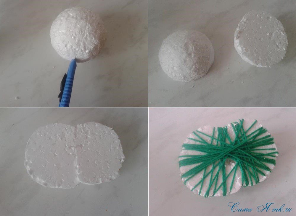 Основание из пенопласта и ниток