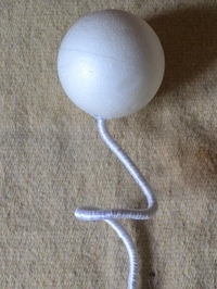 Наклейте меньший пенопластовый шарик поверх цветочных палочек, оставив между двумя пенопластовыми шариками зазор в 3–4 дюйма.Вот и все! Очень просто.
