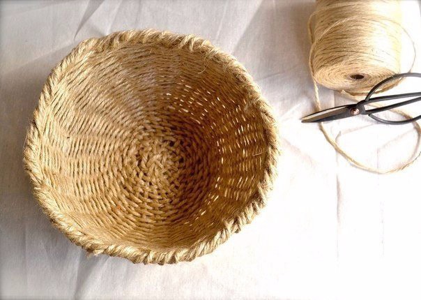 - Небольшую емкость, которую будете оплетать (миска, стакан, коробочка).