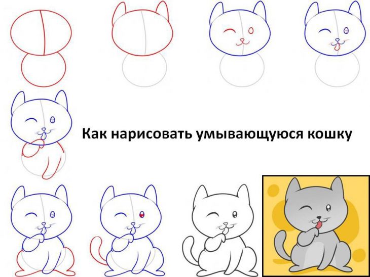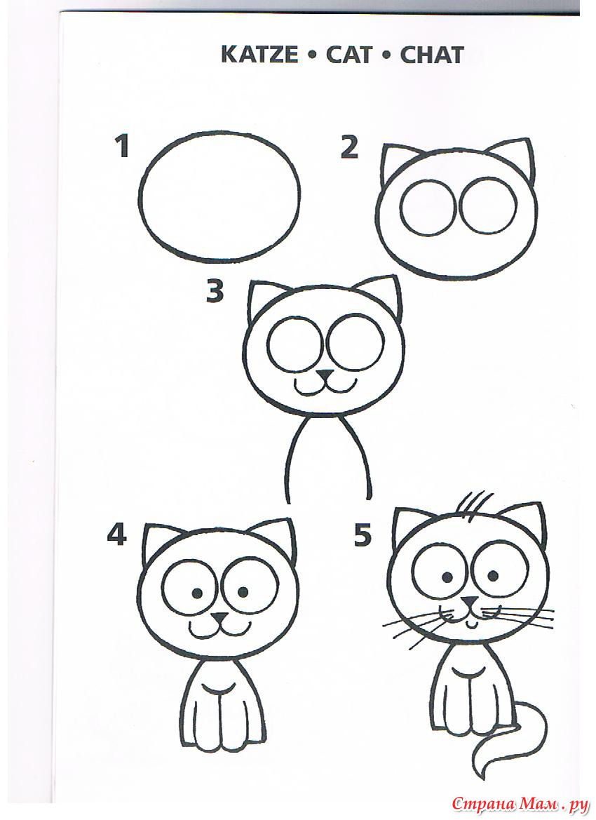 Чтобы ребенку легко было нарисовать, например, кошку мы расскажем, как можно нарисовать кошку поэтапно.Рисуйте вместе с ребенком, тогда ему проще будет запомнить и освоить рисунок кошки.