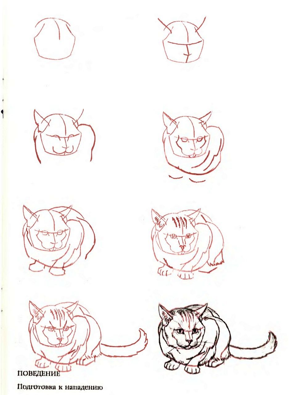 Рисуем котика поэтапно карандашом с детьми. Как нарисовать кошку карандашом поэтапно