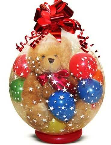 - Маленький подарок (украшение, конвертик с деньгами, сертификат) можно поместить в специальный шар-сюрприз. В ответственный момент он взрывается, и именинник оказывается среди россыпи серпантина, маленьких шариков, конфетти, листиков с поздравлениями. Его задание – во всем этом безумии отыскать свой гостинец.