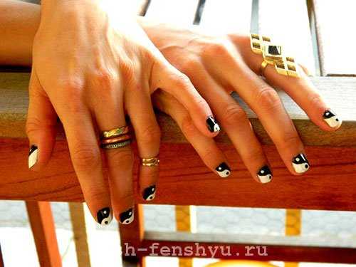 Маникюр по фен-шуй представляет собой выделение максимум 2 ногтей на пальцах цветом. Для этого применяются темный или светлый оттенок, рисунок, орнамент, который влияет на обладательницу в вопросах любви, дохода, счастья, процветания.