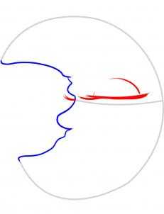 Следующий этап – дорисовываем что-то наподобие полукруга в нашем круге, как показано на картинке.