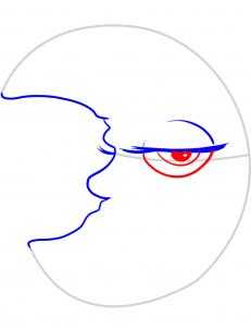 Рисуем контур глаза луны, полукруглая линия и на ней овальной формы будет основа глаза.