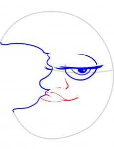 Следующий этап – пририсовываем рот луне. Для этого выводим две полукруглые линии немного ниже носика.