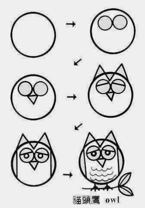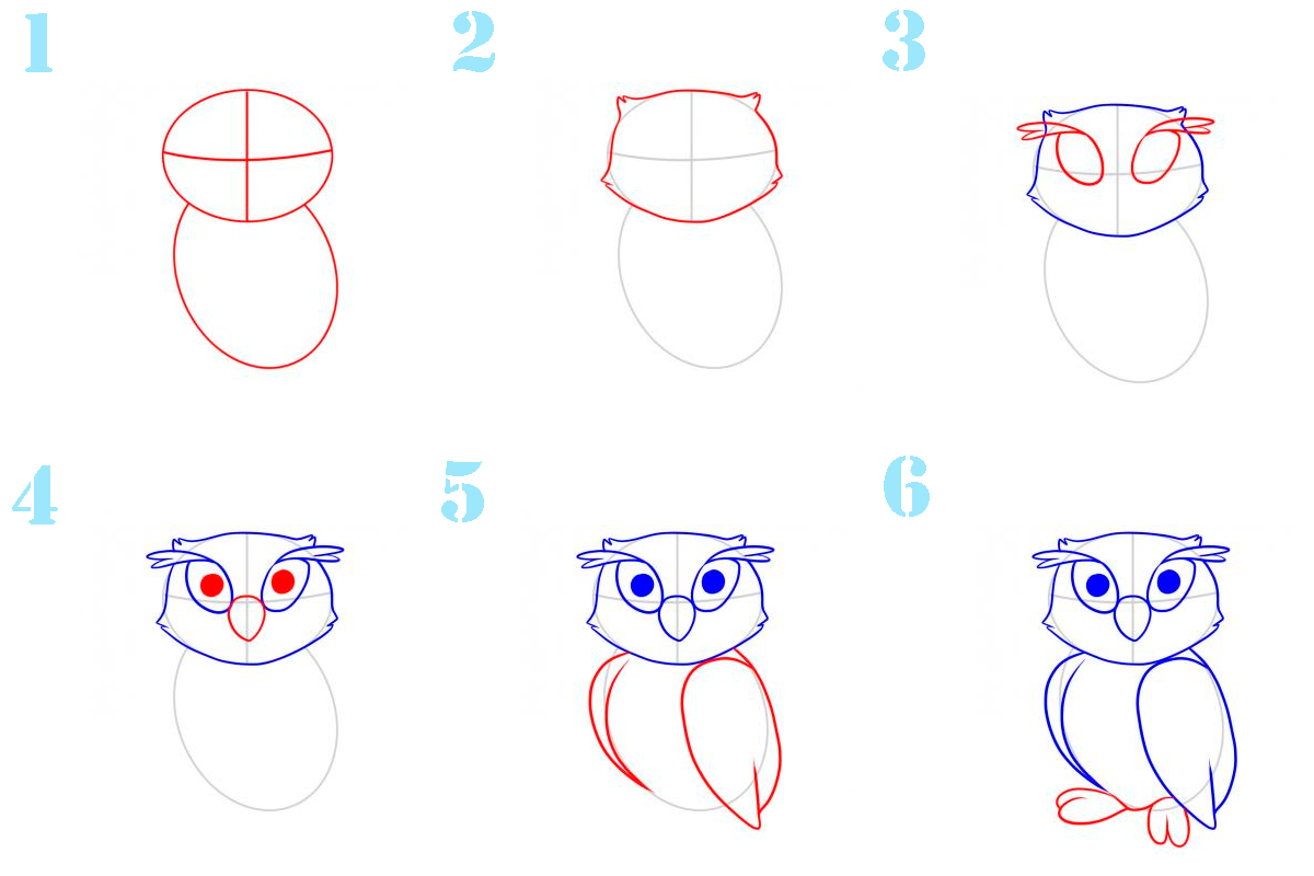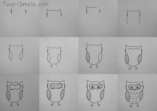 Как нарисовать сову (мультфильм) ВИДЕО и пошаговые изображения
