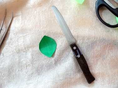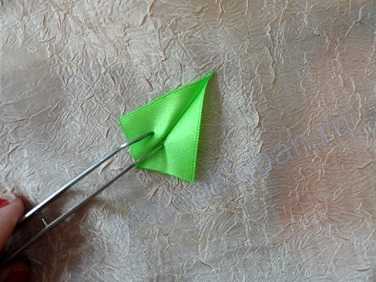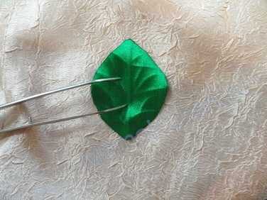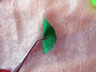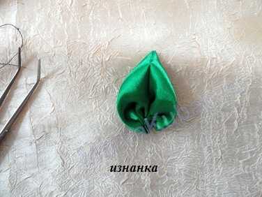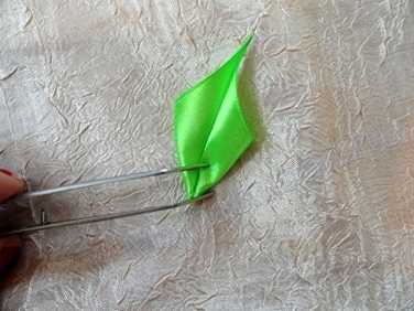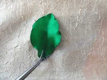 В самом начале, когда я только училась делать цветы из атласных лент, и еще не имела специальных инструментов, у меня возник вопрос именно по изготовлению листиков из ткани.